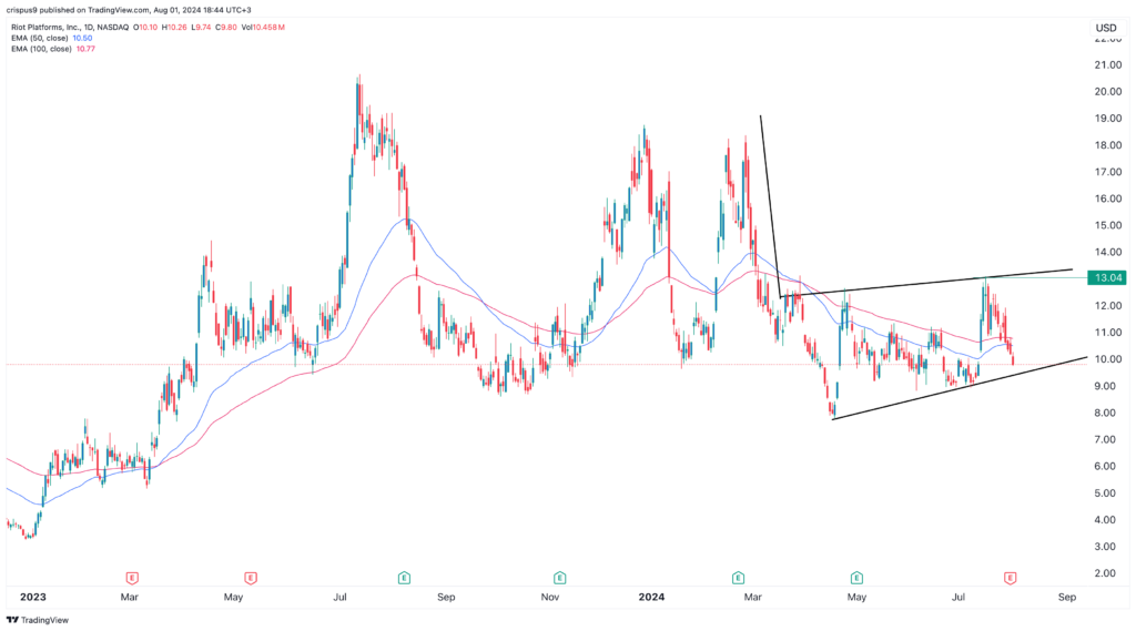 Riot Platforms (RIOT) stock price has broken a bad record for the year. It has retreated in the past nine straight days and reached a low of $10, its lowest swing since July 12. It was its longest losing streak since January when it tumbled for six days straight.